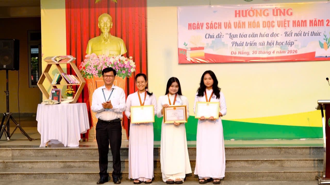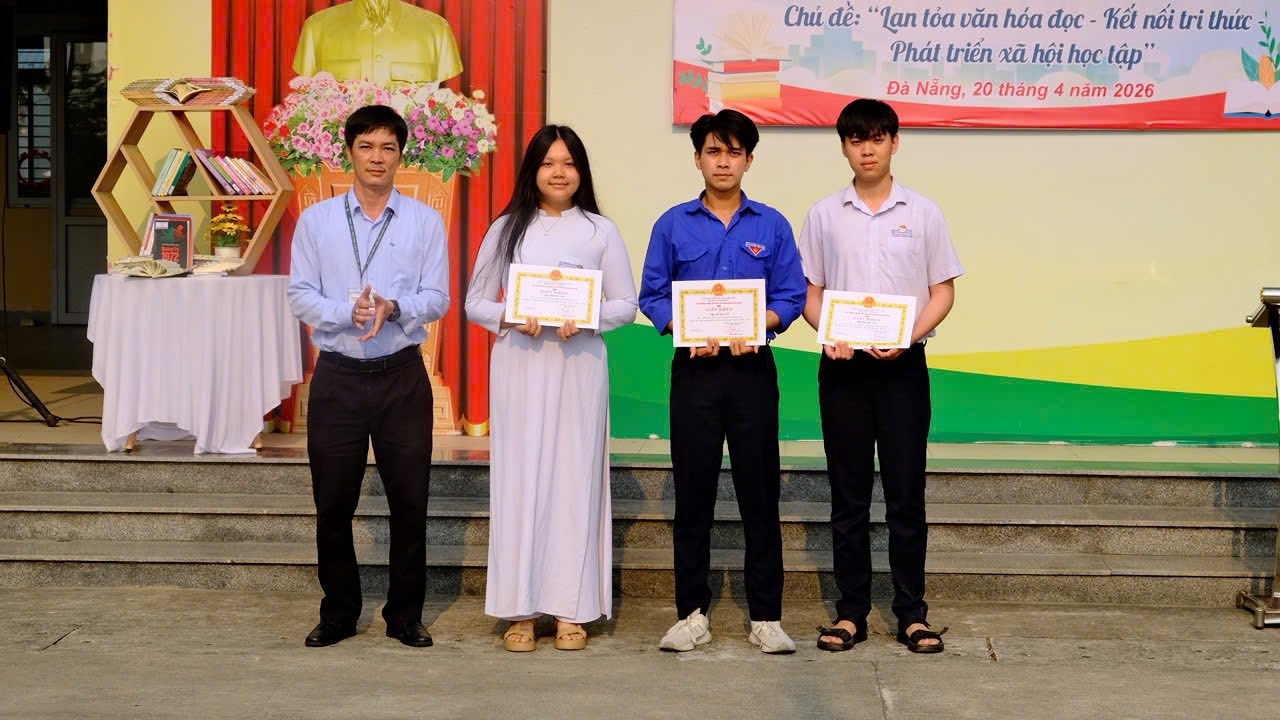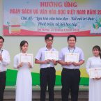 Bên cạnh đó, nhà trường đã khen thưởng 03 tập thể và 05 cá nhân đạt thành tích Nhất, Nhì, Ba trong phong trào đọc sách, khen thưởng 07 tập thể đã có thành tích xuất sắc trong phong trào ủng hộ sách và 08 cộng tác viên có đóng góp tích cực trong công tác thư viện. Đặc biệt, qua hai đợt phát động ủng hộ sách của dự án “Sách hay chuyền tay – Đổi sách lấy quà”, toàn trường đã quyên góp được 1.041 cuốn sách, góp phần làm phong phú thêm nguồn tài nguyên tri thức và lan tỏa tinh thần sẻ chia trong cộng đồng học sinh.