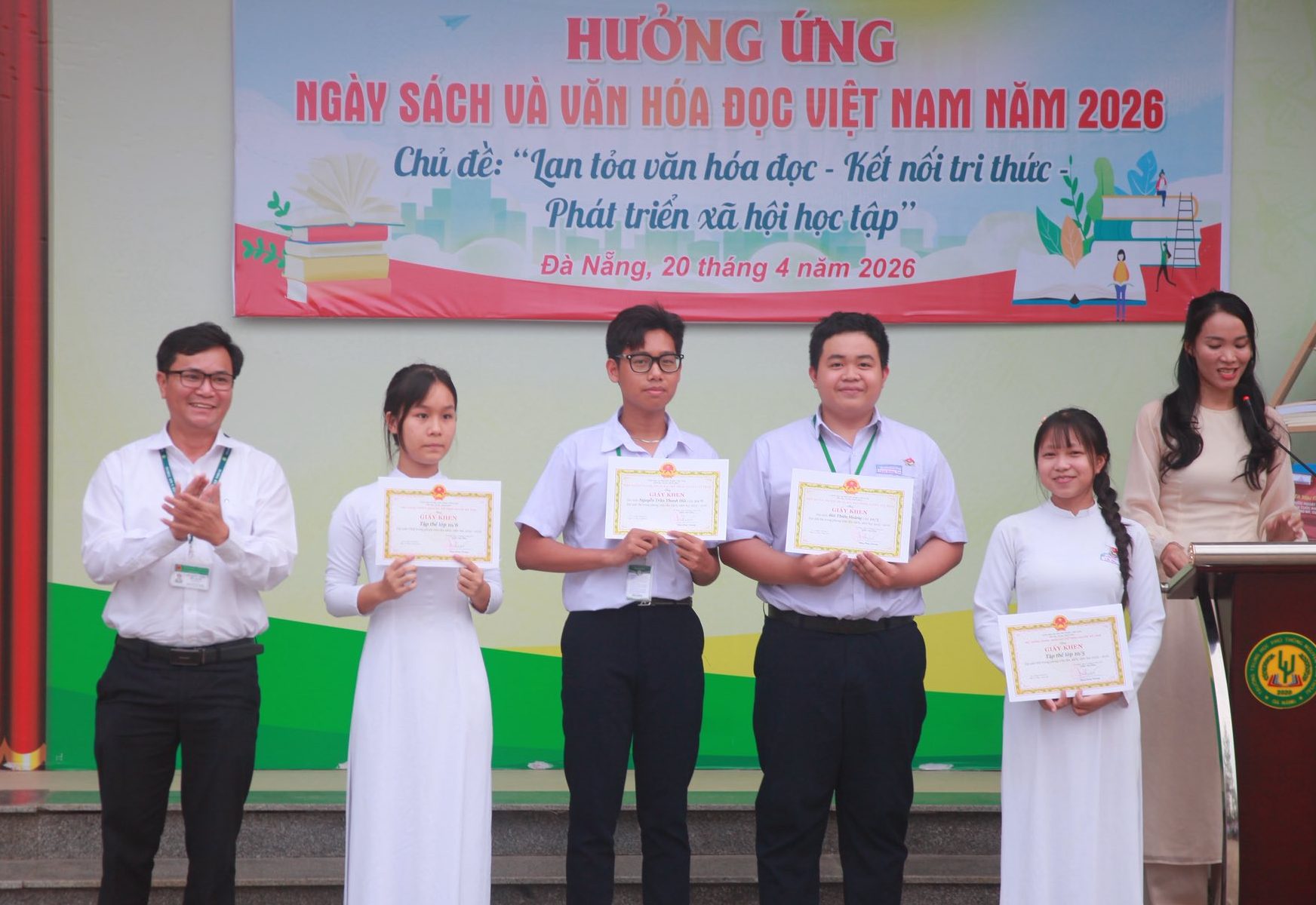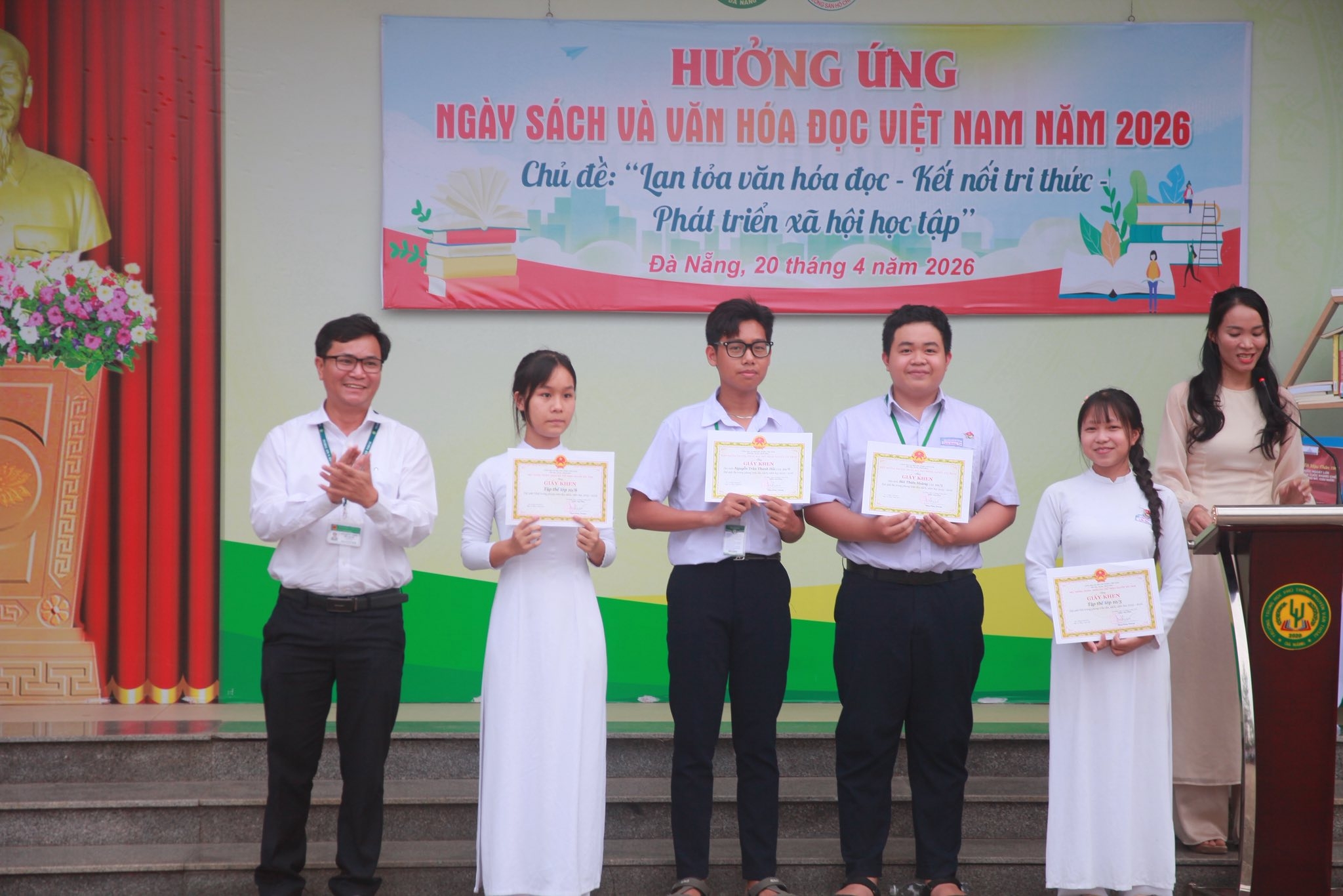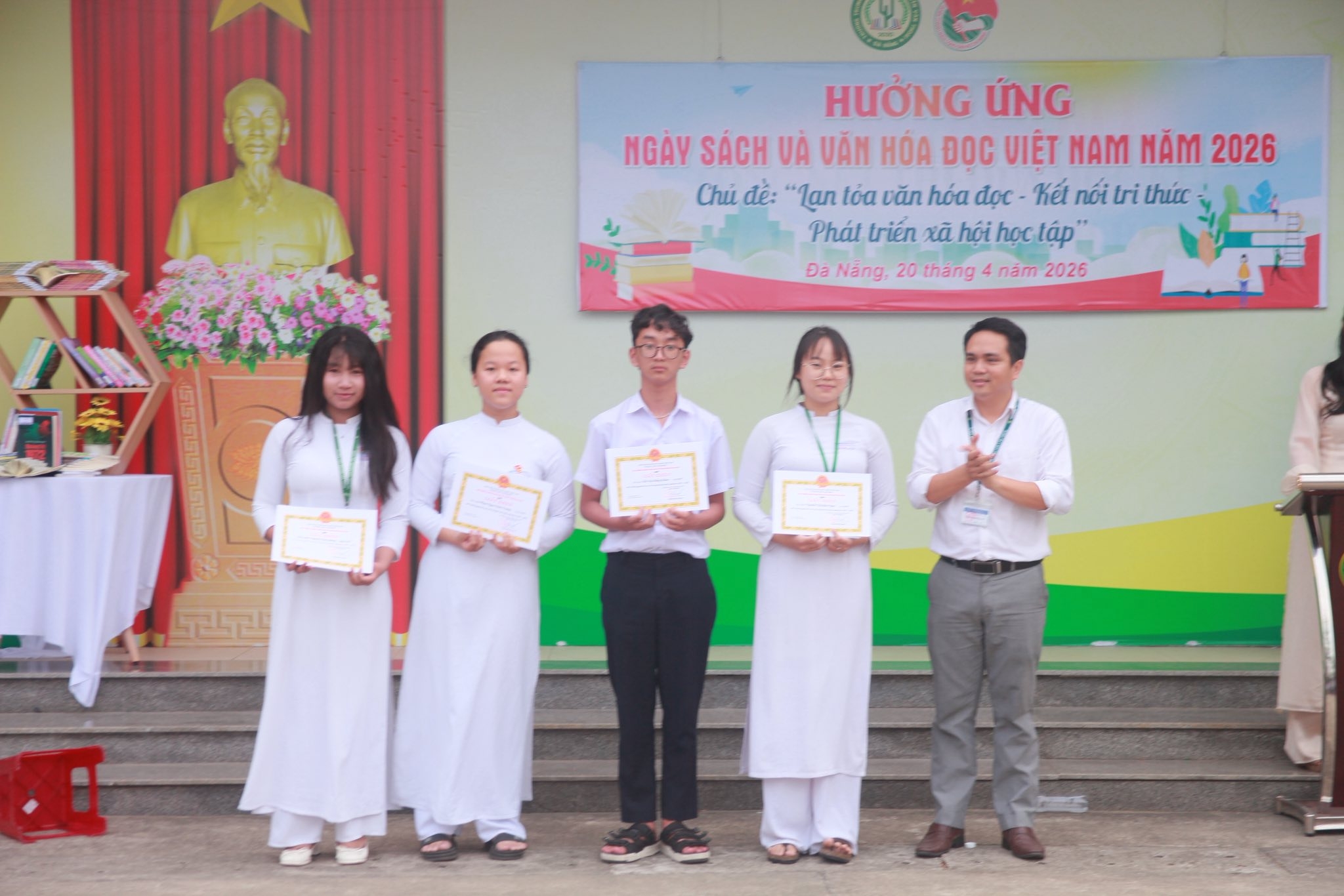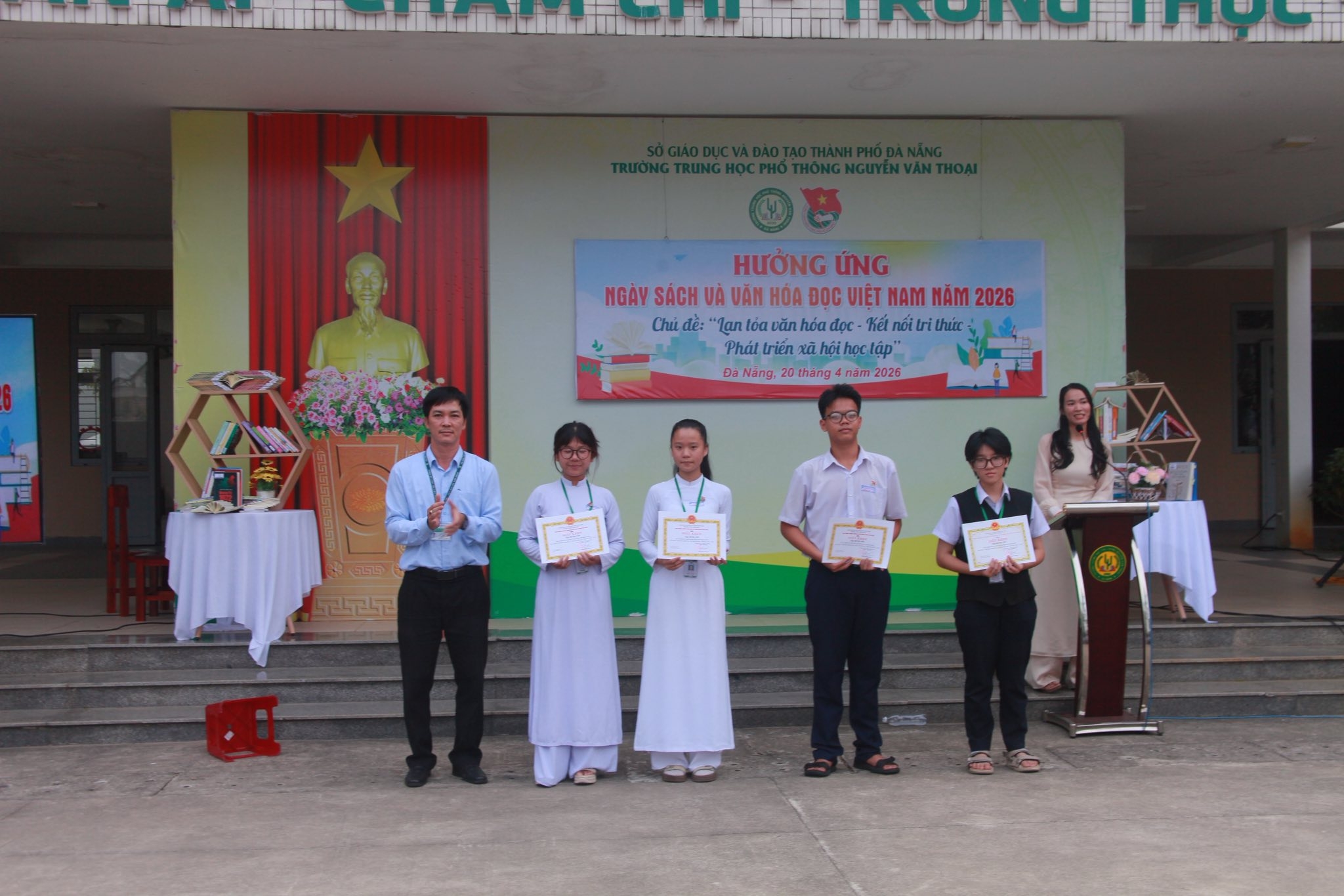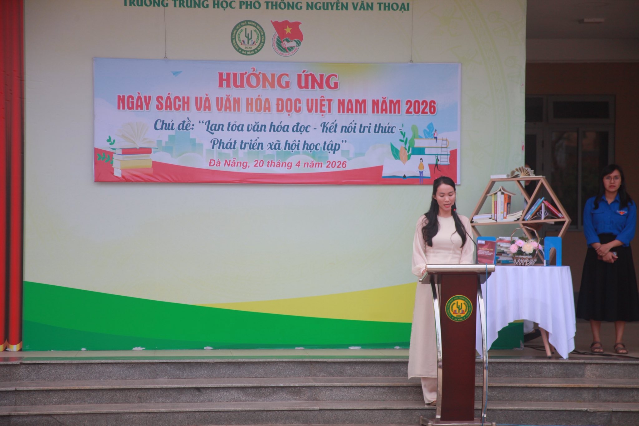 Thực hiện Công văn số 1172/SGDĐT-GDTrH&HSSV ngày 26/3/2026 của Sở Giáo dục và Đào tạo thành phố Đà Nẵng Nẵng về việc tổ chức Ngày sách và Văn hóa đọc Việt Nam lần thứ 5 năm 2026. Ngày 20/4/2026, Trường THPT Nguyễn Văn Thoại đã tổ chức tiết sinh hoạt dưới cờ hưởng ứng Ngày Sách và Văn hóa đọc Việt Nam với nhiều hoạt động ý nghĩa, lan tỏa thông điệp: “Lan tỏa văn hóa đọc – Kết nối tri thức – Phát triển xã hội học tập”.