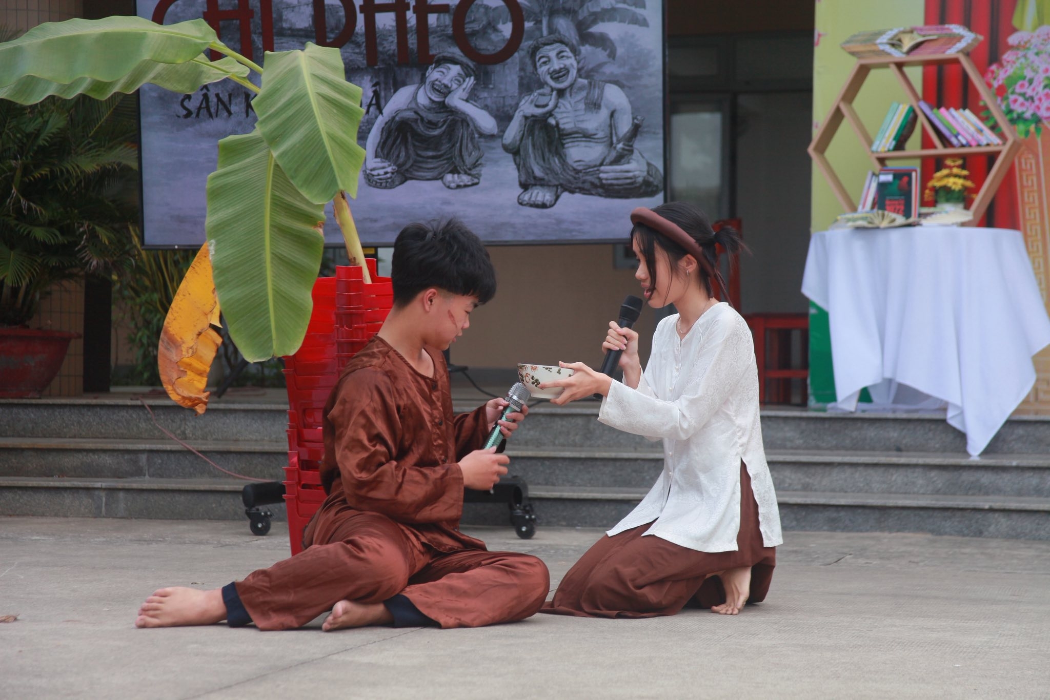 Chương trình càng trở nên hấp dẫn khi văn chương được “thổi hồn” vào đời sống qua các hoạt động nghệ thuật đặc sắc. Em Nhã Uyên (lớp 10/9) đã mang đến phần giới thiệu sâu lắng, đầy cảm xúc về tập thơ “Gió và tình yêu thổi trên đất nước tôi” của Lưu Quang Vũ. Những trang sách như được sống dậy trên sân khấu qua các tiết mục sân khấu hóa ấn tượng: tình phụ tử thiêng liêng trong “Chiếc lược ngà” (lớp 11/4) và bi kịch đầy ám ảnh của “Chí Phèo” (lớp 11/9). Dù không phải là diễn viên chuyên nghiệp, các em học sinh đã thể hiện xuất sắc, để lại nhiều ấn tượng sâu sắc trong lòng người xem.
