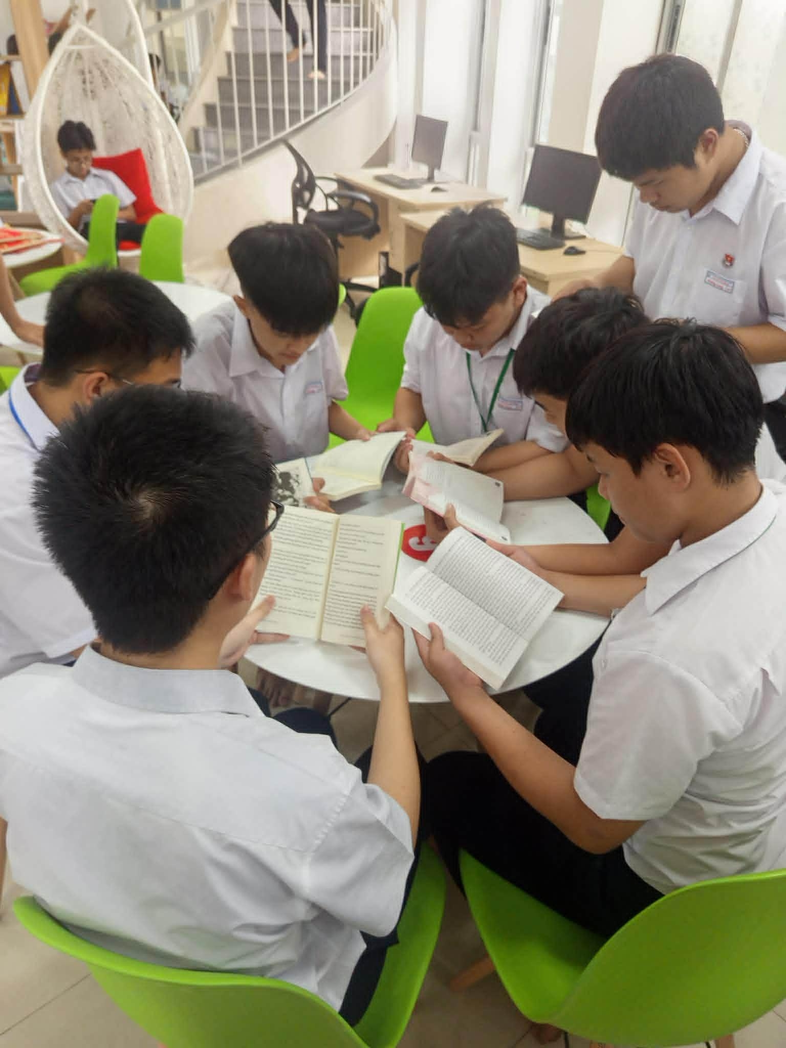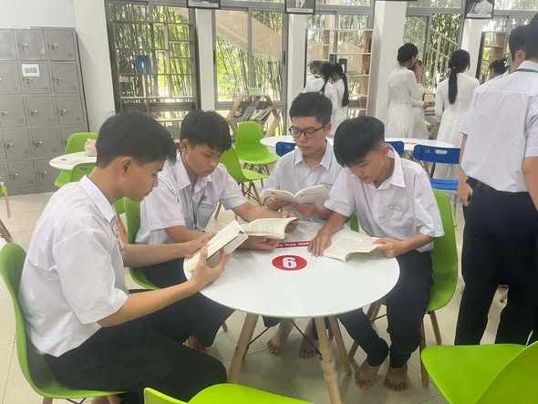 Bên cạnh đó, nhà trường đã khen thưởng 03 tập thể và 05 cá nhân đạt thành tích Nhất, Nhì, Ba trong phong trào đọc sách, khen thưởng 07 tập thể đã có thành tích xuất sắc trong phong trào ủng hộ sách và 08 cộng tác viên có đóng góp tích cực trong công tác thư viện. Đặc biệt, qua hai đợt phát động ủng hộ sách của dự án “Sách hay chuyền tay – Đổi sách lấy quà”, toàn trường đã quyên góp được 1.041 cuốn sách, góp phần làm phong phú thêm nguồn tài nguyên tri thức và lan tỏa tinh thần sẻ chia trong cộng đồng học sinh.